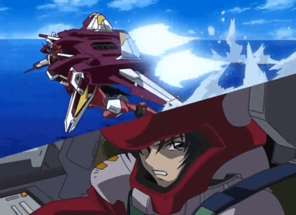 Athrun piloting the Justice using the HiMAT system.